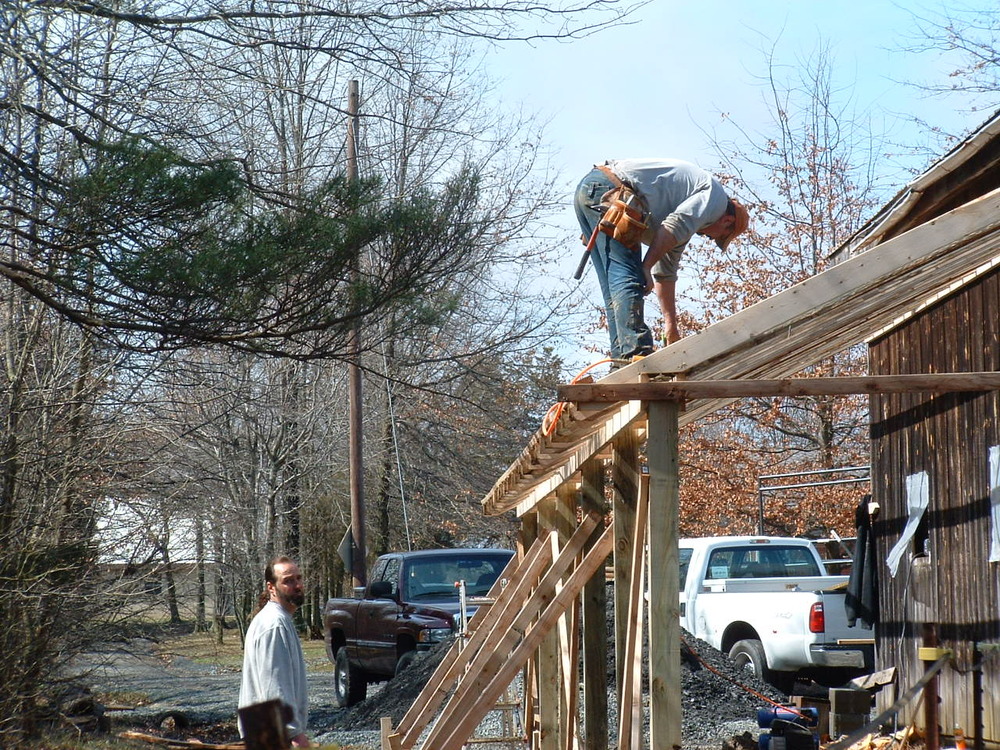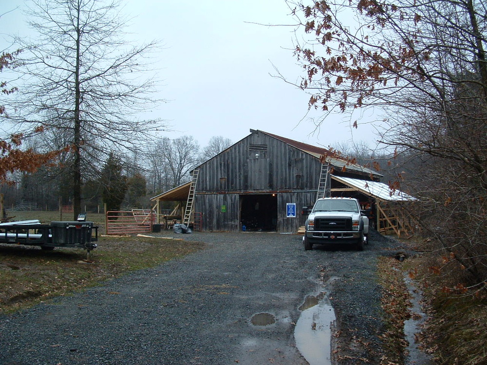 We added a storage shed to the right side and walk out stalls with an overhang on the left side of the barn.
