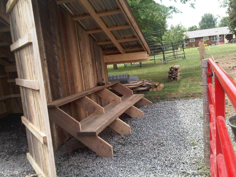In about 3 days they built a shavings shed for the horse stall bedding. On one side is bleachers for viewing training and riding lessons.