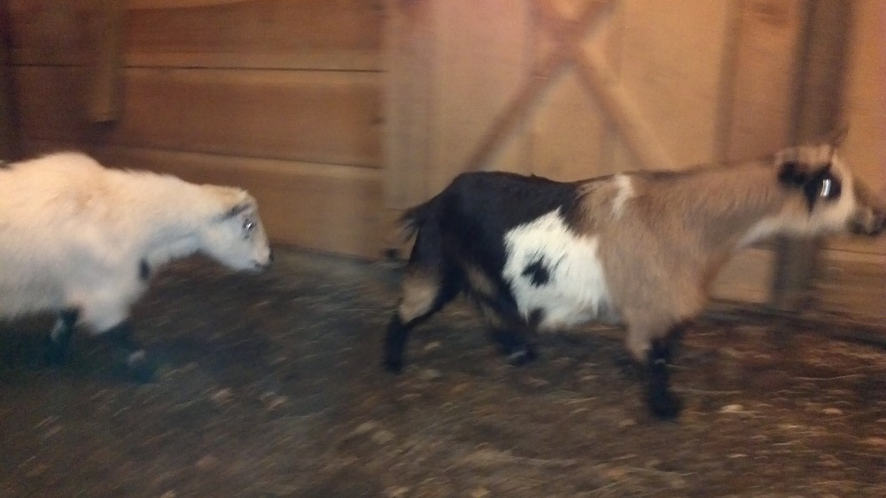Welcome to the farm Patsy (the tricolor) and her daughter Dolly (mostly white).