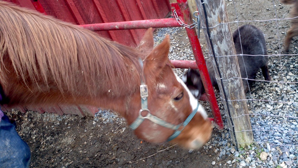The newest member of GSF. Today he hung out with everyone but Nash, the bully. He got along great with everyone, even the donkeys. He tried to help me clean the shed row. Then said hello to the goats. He is a very sweet boy and looks like he fits in well.