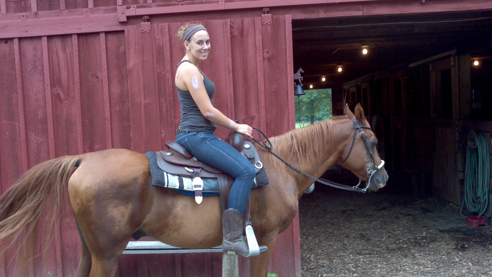 So our trail rides are road rides, but they are quiet back roads and my horses (except Nash) are almost bomb proof. This week we have gone on a trail ride every evening so far. Casey has gone on every ride. You can see from the pics how good he is looking. He loves the rides and gets in a bit of a gallop when be can. On Monday I rode Apple. While on the ride I took a call about lessons at the farm. Then the gentleman inquired are you on a trail ride right now? Tuesday was Nash. He did ok but was not fond of the big blue garbage bins. Wednesday was Cuervo. I think he was more interested in getting back for his dinner. But the sunset was beautiful and I can’t think of a better way to end the day!