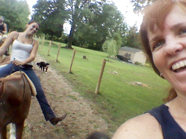 A great way to end the week and our fifth day of riding in a row. The evening started with a new friend riding for the first time. Of course trusty Cuervo showed him how to do it. Followed by my first bare back trail ride in over twenty years (yes I am showing my age now). Piper came with us, she was a great trail dog, stayed with is the whole time and really enjoyed herself. The ride ended with me capturing Casey at a full gallop. Hope you enjoy the pics as much as we enjoyed the evening.