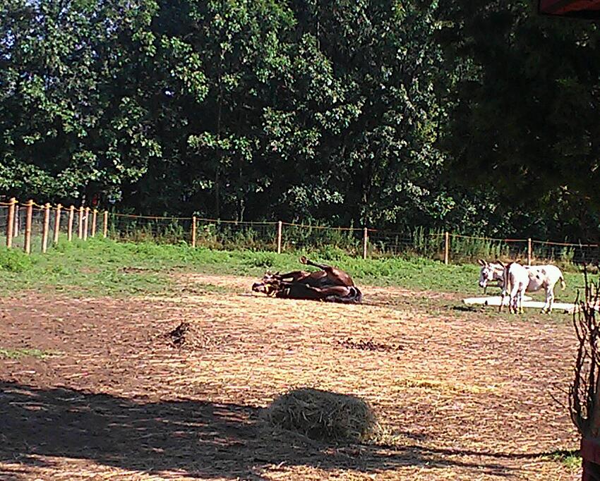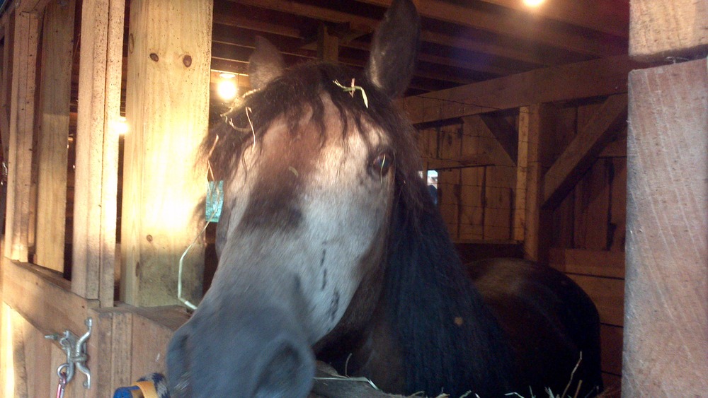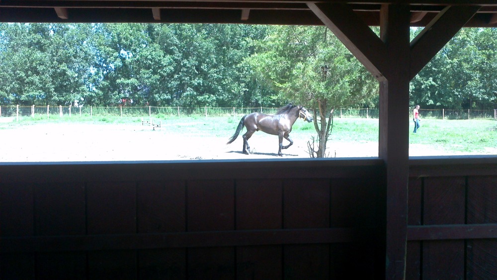 Tonka is our trainer’s next project. He has taken Carrie’s place in the revolving training stall. Tonka is an 8 year old mustang. He spent the first 2 years of his life running wild in Wyoming. He is joining us for a month and will be learning dressage.