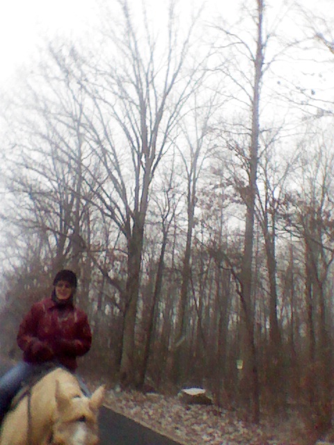 One of the first snow falls of the year and where am I? Leading a trial ride with one of my die-hard lesson students. I keep telling them I will give trail rides and lessons for as long as they want them. And to my surprise some of them are still asking for them. Here I am with my 3 layers on the bottom and 5+ layers on top out in a snow shower. It is all about the layers you know. It was very peaceful. One of my favorite sounds is to hear snow falling on the trees. Apple and Cuervo seemed to enjoy themselves too. They had a spring to their step.