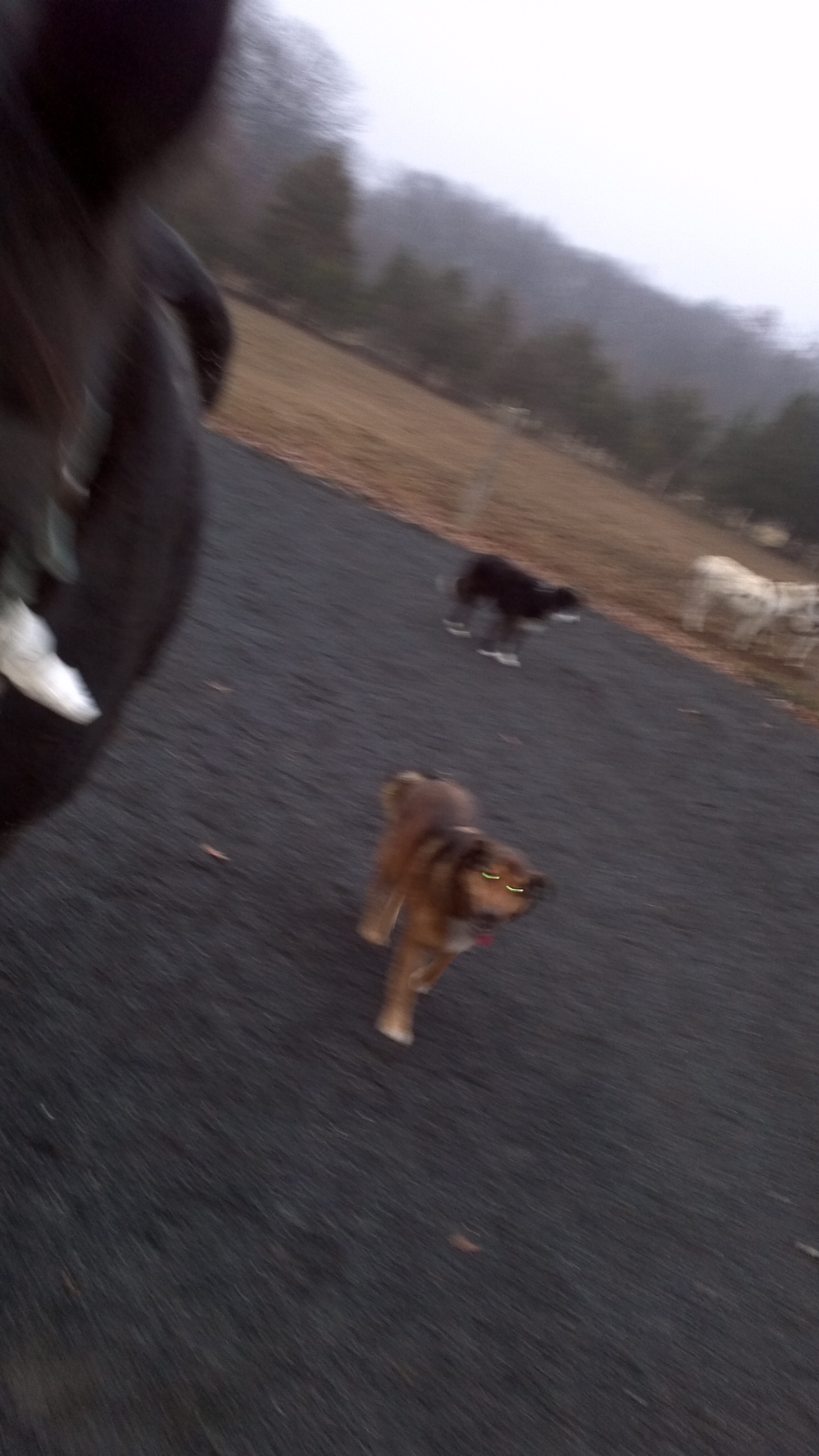 I walk Nash in circles around the riding ring. Not exciting but at least it is even, not muddy and we is getting out to stretch is legs. We are not the only ones walking in circles. Piper and Shadow bring up the rear. Sorry kinda fuzzy due to walking and taking pics.
