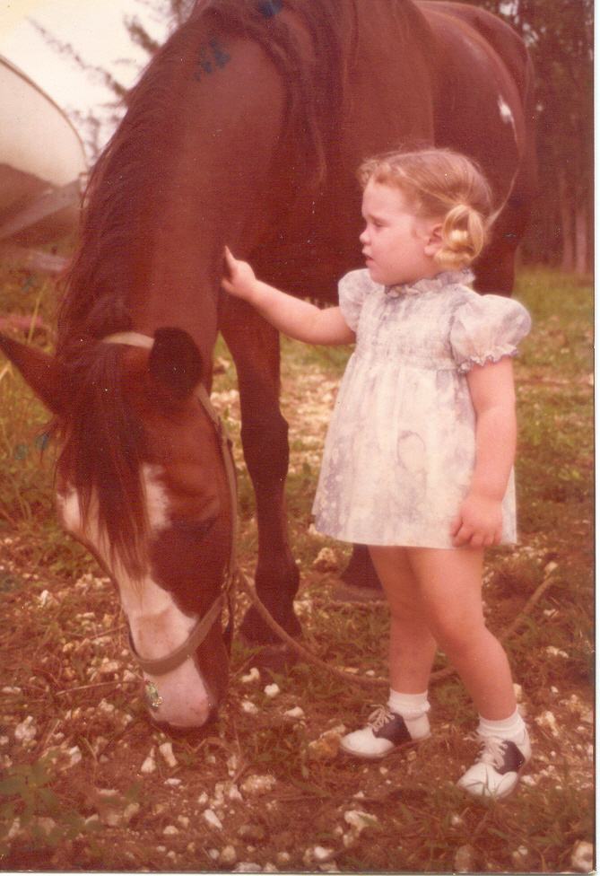 My mom’s favorite childhood story about me to tell visitors is when, on my own and without her knowing, I walked out of the trailer to visit with the horses. I may my way across the yard and crawled under the electric fence, being very careful not to touch it. I then sat between the two of them and had a conversation. My mom saw me from the window then quietly and slowly walked up to the fence. She wanted to run but knew she might startle the horses. Then she had to coax me to come out of the pasture back to safety.