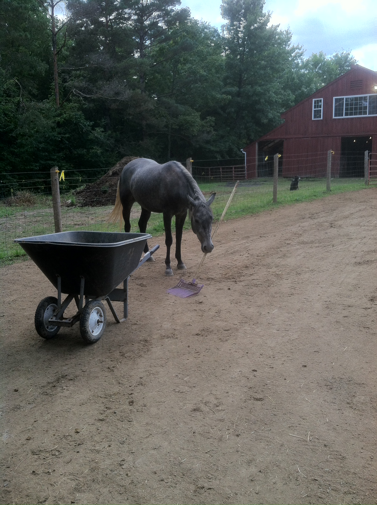 It is amazing to see how the horses interact with us when we are working in their pasture. It is testament to how happy the horses are here. On this day Chex and Warlock help us put a wheel on their gate.
