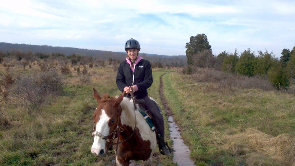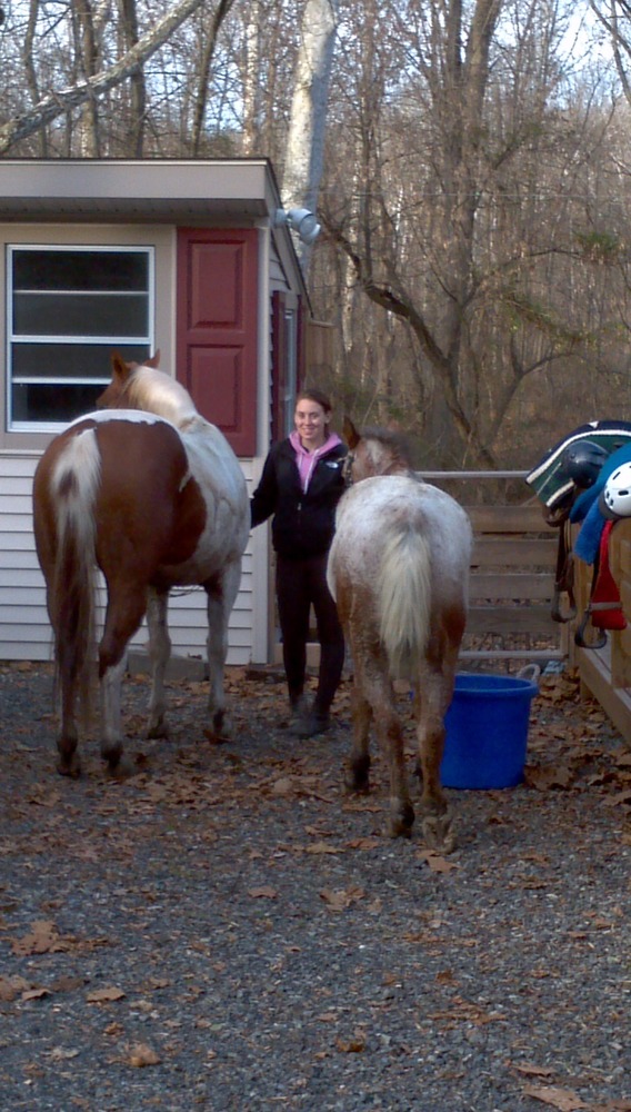 Our first off the farm trail ride was at green lane park. It was a beautiful day. The deer on the side of the trail litterly stood a few feet away from us. We crossed the lake by bridge and followed the advanced trail. It was challenging but Apple and Dalton were awesome. The trail was narrow and rocky. We went along the lake, forged creeks, and up & down steep hills & embankments. It was going well till we got lost and ended up along a busy road. Fortunately a very nice family let us hang out and gave us “safe harbor” till we were rescued and picked up by the truck and trailer.