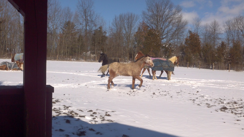 a It always causes raucous . The donkeys were braying and chasing Warlock around. The paints Dalton, Nova and Chex all reconized each others spots. Over all it went well despite leaving behind a few expected bite marks.