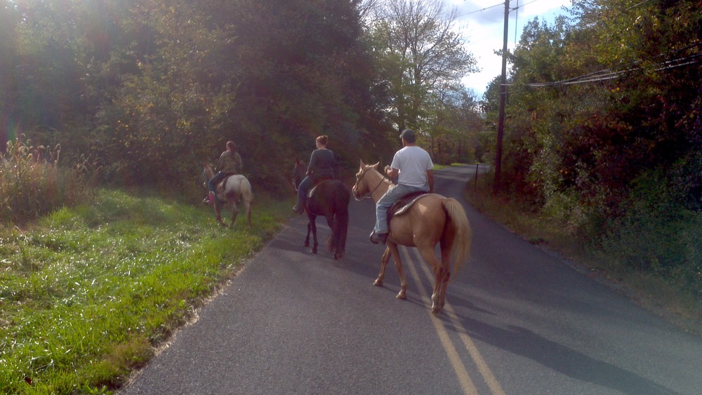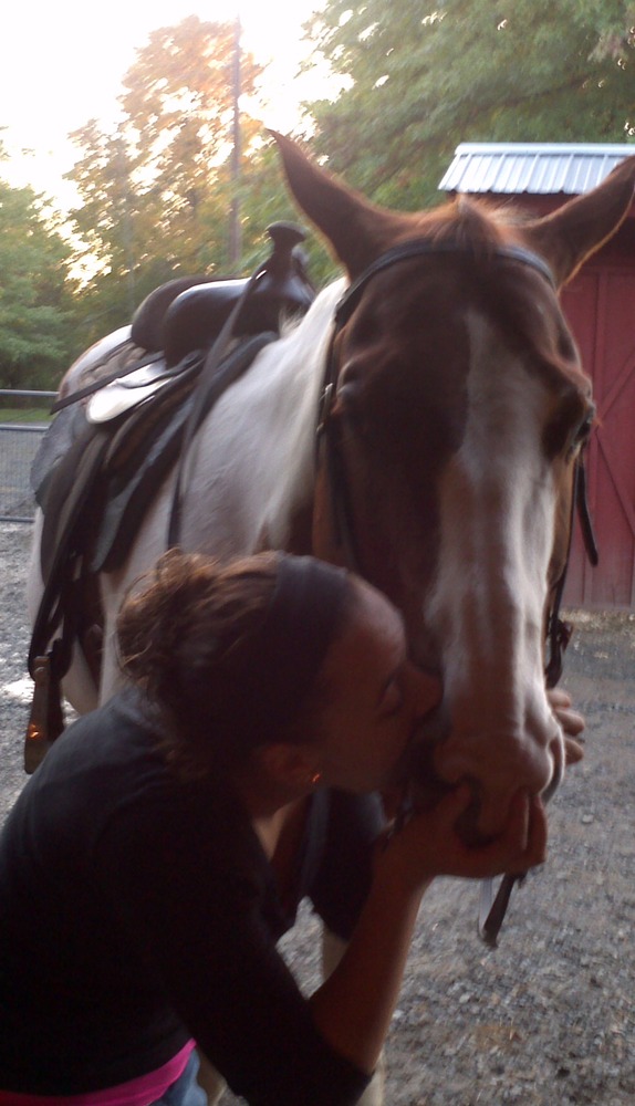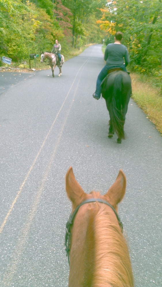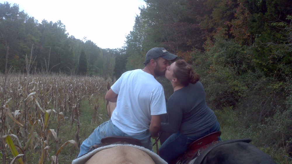 That afternoon we went out on a road ride. It was Nova’s first time out with us on the quiet country back roads. He did really well! And apparently it was so romantic that our engaged friends decided to share a kiss on horseback!