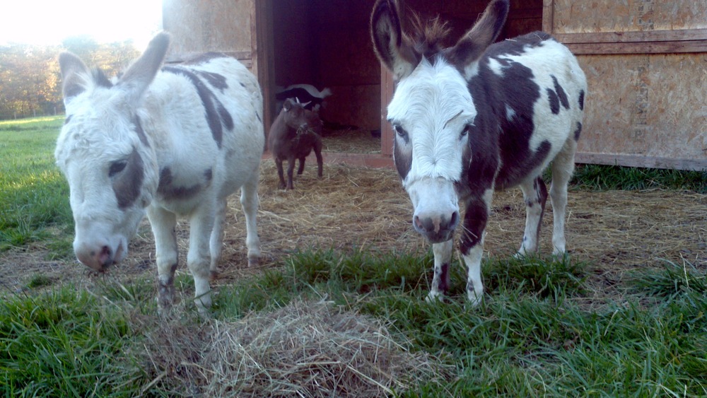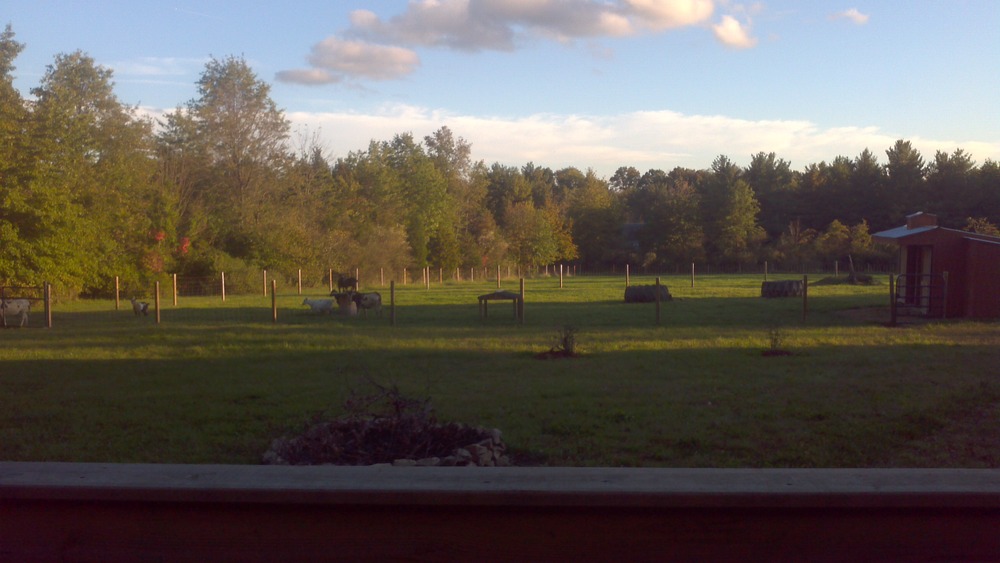 Since we have temporarily ran out of stalls I decided to bring the donkeys up front to live with the goats. They are not too happy about the move and are definitely taking the time to get used to each other. The good part is that Frodo is not chasing the donkeys, in fact it is the exact opposite and the donkeys back down with the goats challenge them. The one picture is from my front porch.
