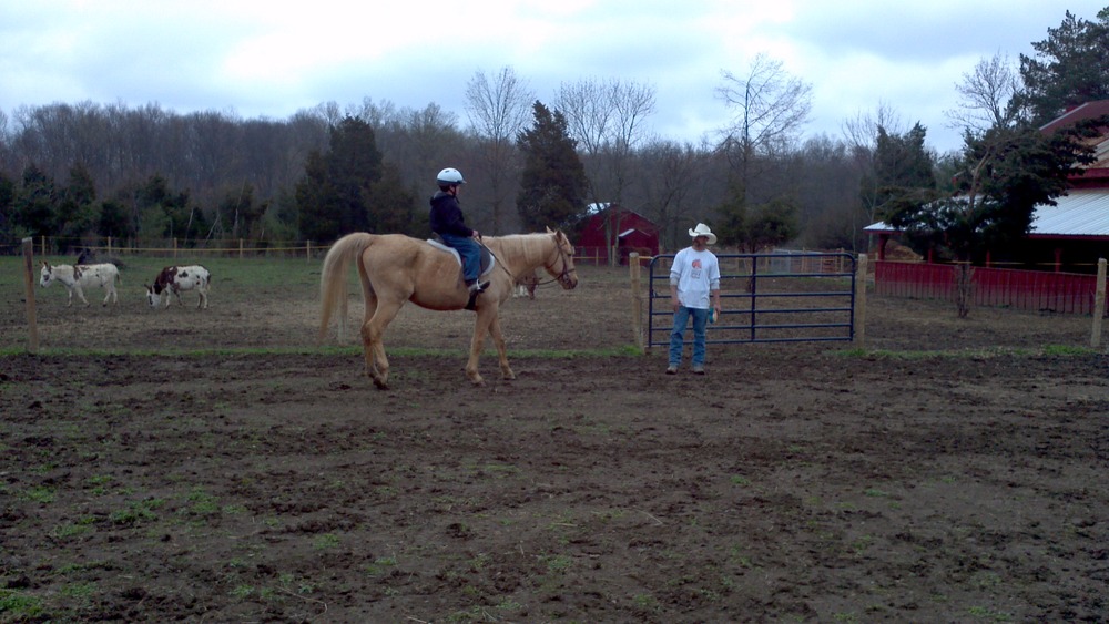 On Saturday Mugsy learns how to ride. Casey continues his getting back into shape. I learn how to drive my tractor and cut the back pasture. It ends with Casey trimming the grass while I finally get to put my feet up. Great, productive week end at the GSF. Thanks to my friends who helped set up the tractor and did all the barn work.