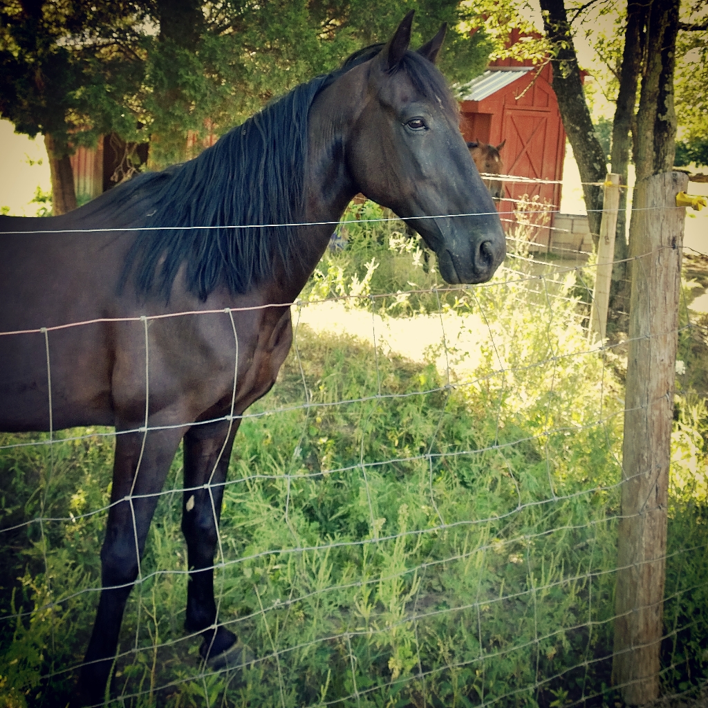 Here are some pictures of him in his new home. Nothing phased him at all. He went straight out to eat grass. He has a new buddy and pasture mate named Ricochet. Two of the pictures below were sent to me from his new owners. They gave me a thank you card with horse quote stickers on the envelop. I put those quotes on his pictures.