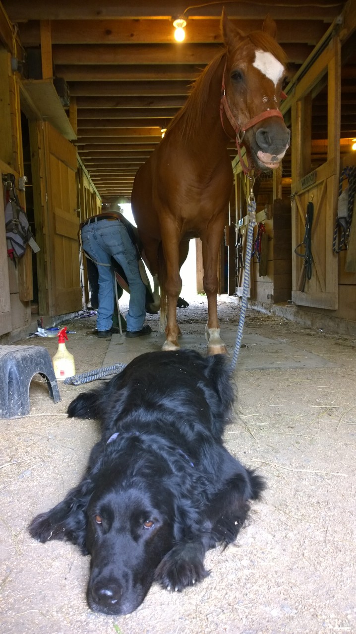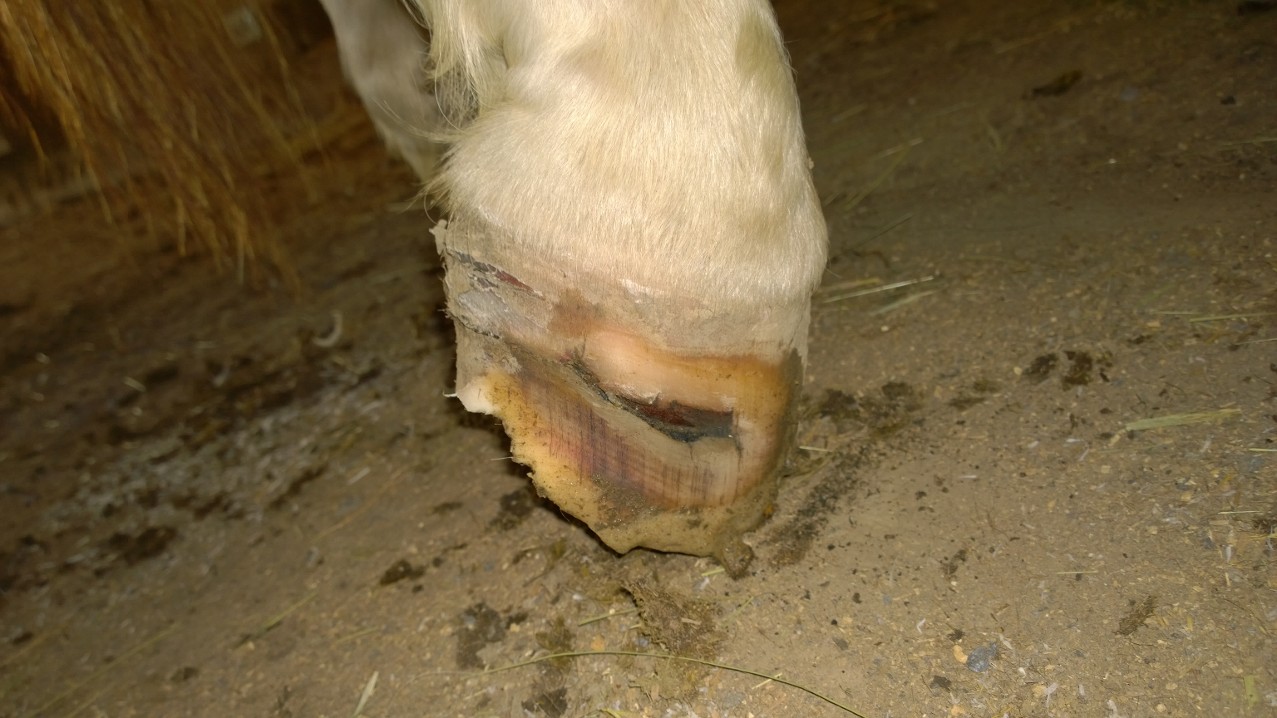 Barry found Sunbun’s hoof hair line wound was growing out with a whole in the hoof wall, but he fixed him right up with an epoxy type glue and a screwed on plate.