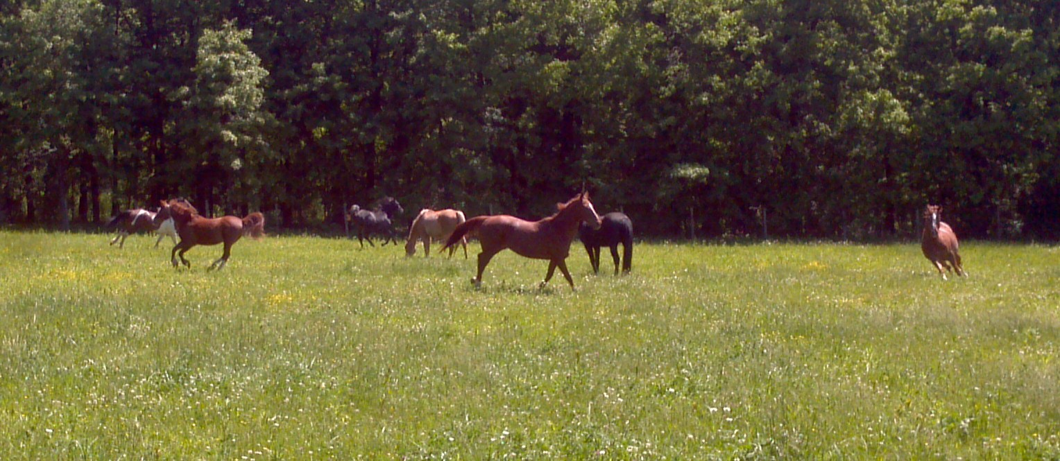 Last weekend the horses got to go out in the back pasture. They were so excited that they had to run around like nuts for a few minutes. I don’t know what it is about new fresh grass but you would think they would want to start munching right away. Instead they have a good romp then get down to the business of eating.