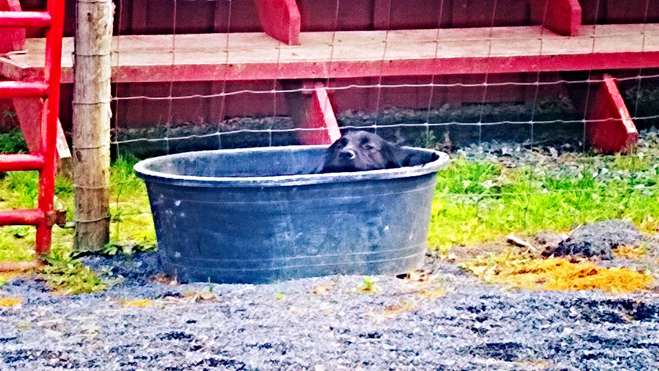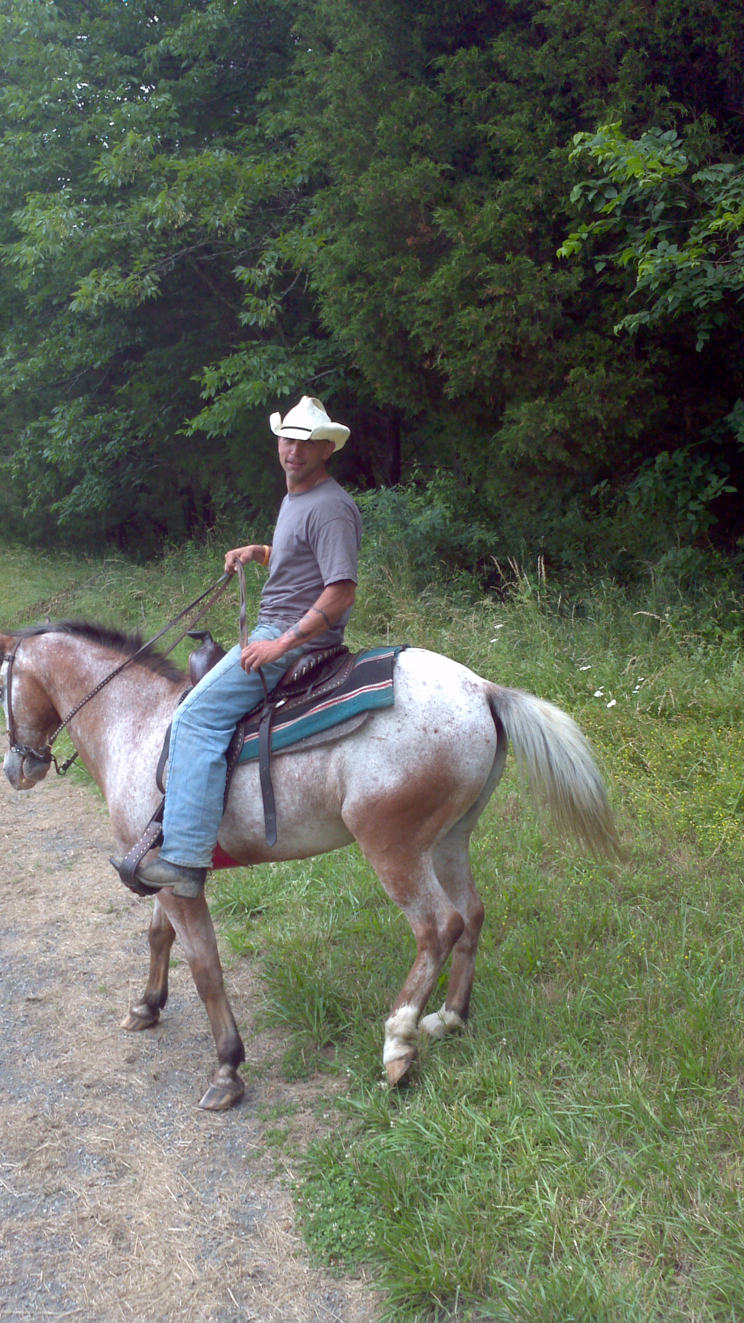 The next trial ride he didn’t want to go through the gate right away but I could hear him barking as we were leaving “what about mee?”. So we went on the trial ride. About 3/4 of the way through he come bound up behind us. I guess his nose worked this time. He was so overheated from this run around the field that he jumped into the horses water trough when we got back.
