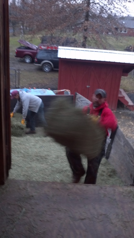 We moved 132 bales of hay from the truck to the hay loft yesterday. Luckily this crazy weather held out for the delivery and unloading. Thanks as always to the farm family for your help.