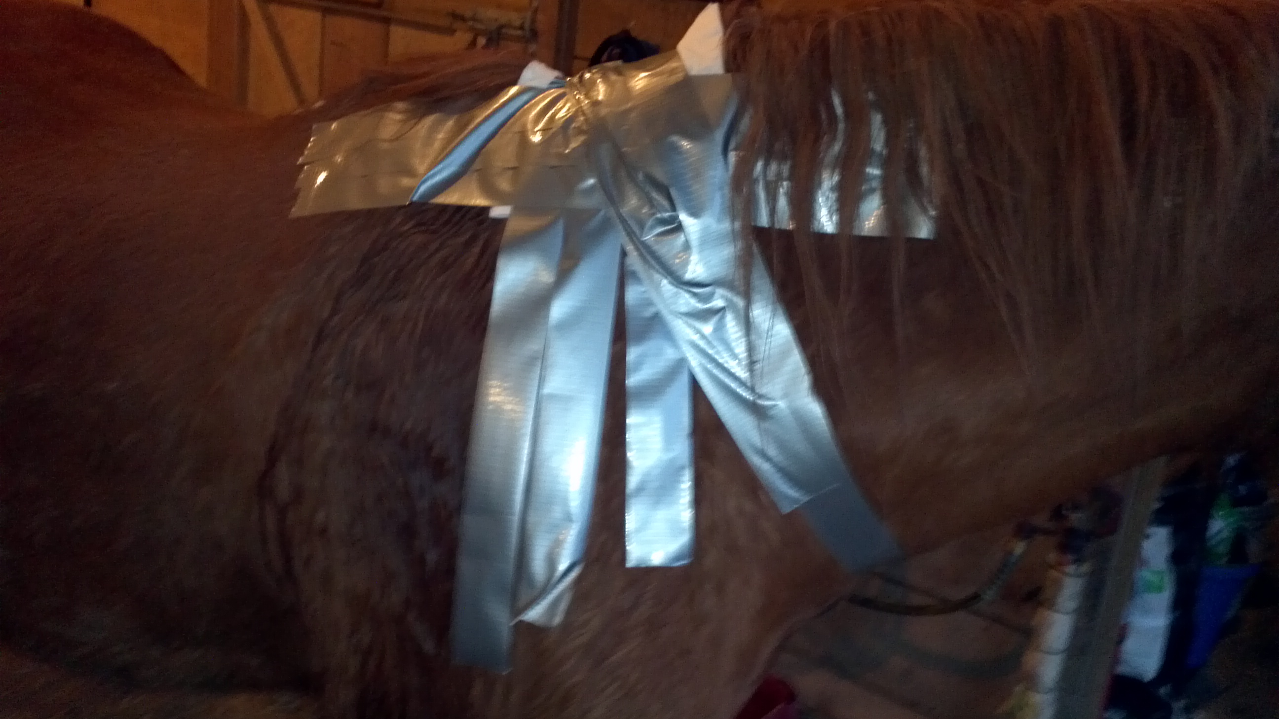 10/5 Medication did not seem to be working. He stopped eating all of his grain and was only picking at his hay. He still seemed to want grass but also started to chew on the wood. Vet said this was because of the bute so now he is getting Pepto for horses and a probiotic, to settle his stomach. He received a mild sedative and cortisone shots in his lower spinal area. If it is a nerve issue this should improve the situation in 2-3 days.